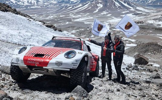 Ojos Del Salado, najwyższy wulkan świata. Góra, na którą na pewno jeszcze nigdy nie wjechał żaden samochód, a już na pewno nie sportowy. Nie wiem jak powstał ten pomysł, kto wie czy nie na zasadzie - nie da się? To potrzymaj mi piwo. Tak czy inaczej Porsche wyruszyło na wyprawę mocno zmodyfikowanym Porsche 911 zbudowanym we współpracy z dakarowym ekspertem, firmą RD Limited i trzykrotnym zwycięzcą wyścigu 24h Le Mans Romain Dumas.