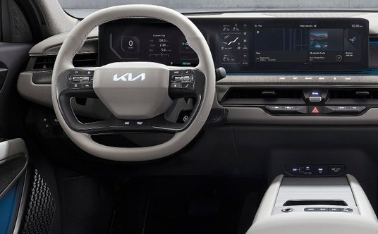 EV9 ma wyrazistą, ostrą stylizację. To nowe proporcje nie tylko z punktu widzenia Kii, ale również konkurencji. Do tego to bardzo duży samochód, który ma nieco ponad pięć metrów długości i trzy metrowy rozstaw osi. Tak duży rozstaw i płaska podłoga mają we wnętrzu zapewnić bardzo dużą ilość miejsca dla pasażerów. Rodzinnego elektryka będzie można zamówić w wersji siedmio- lub sześcioosobowej. We wnętrzu pojawią się jasne materiały.