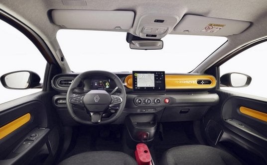 Podczas styczniowego salonu samochodowego w Brukseli 2025 Renault pokazało wnętrze modelu w niemal seryjnej formie. Projektanci połączyli minimalizm z retro estetyką. Deska rozdzielcza jest prosta, ale pełna charakteru. Ma cyfrowe zegary (7 cali) i centralny ekran multimedialny o przekątnej 10,1 cala. Przemyślano też ergonomię i codzienną funkcjonalność. Kolorowe materiały, otwarte półki pod deską i pomysłowe schowki między fotelami podkreślają miejską lekkość. Uwagę zwraca czerwony przycisk świateł awaryjnych, będący hołdem dla pierwszego Twingo. Tylną kanapę można składać i przesuwać, co daje wyjątkowo dużą elastyczność w tak małym aucie. Jest też panoramiczny szklany dach i sporo gadżetów - jak uchwyty magnetyczne na smartfony dla pasażerów z tyłu, które zdradzają, że Renault myśli o młodym, miejskim użytkowniku.