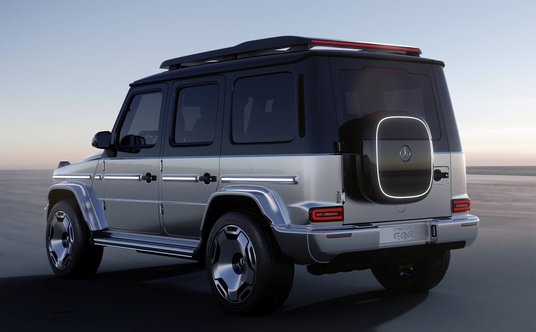 Mercedes zaprezentował studyjną wersję elektrycznej Klasy G. Z zewnątrz koncept EQG różni się wyłącznie detalami od spalinowej wersji. Z tyłu, w osłonie koła zapasowego na tylnej klapie przypominające kształtem wallbox jest miejscem na przechowywanie kabla ładującego.