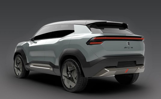 Z zewnątrz eVX zaskakuje zupełnie nowym stylem niespotykane dotąd w modelach Suzuki. Krótkie zwisy, ostre kształty nadwozia, duży rozstaw osi sugeruje nie tylko obszerne wnętrze, ale również bardziej emocjonalne podejście do designu. Być może współpraca z Toyotą, która ostatnie lata dobrą rękę do udanych stylizacji wpłynęła pozytywnie na markę z Hamamatsu. Suzuki nie podało żadnych informacji o napędzie. Jedyne dane jakie udostępniono to pojemność baterii, która wynosi 60 kWh i zasięg - 550 kilometrów według indyjskiego cyklu MIDC.