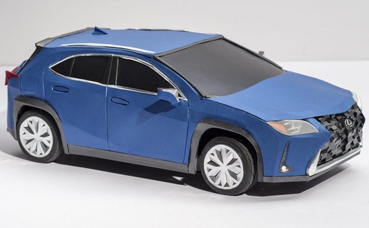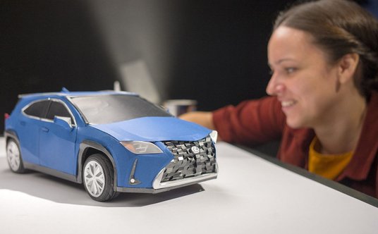 Prace nad papierowym UX 300e trwały aż cztery miesiące. Podobnie jak pierwowzór, Lexus z papieru również jeździ i jest napędzany energią elektryczną. Model stworzony przez artystkę został bowiem osadzony na podwoziu zdalnie sterowanego samochodu. Częścią projektu było więc stworzenie papierowego, miejskiego otoczenia, która licuje z tym nietypowym origami i tworzy scenerię, którą możemy oglądać na zdjęciach i na filmie dokumentującym prace nad projektem. Papierowy Lexus UX 300e został wykonany z papieru o gramaturze 120 g/m2. To dość cienki materiał, ale zastosowanie właśnie takiego rodzaju było wskazane z uwagi na liczne przetłoczenia i specyficzne załamania na powierzchni nadwozia auta. Nie da się ukryć, że Lexus UX nie należy do samochodów o prostej stylistyce. Jego kształty, zgodne z językiem stylistycznym marki, są dynamiczne, a komplet tych właściwości musiał zostać przeniesiony do papierowego świata. Na dowód skomplikowania prac nad modelem UX 300e artystka podaje na przykład technikę, w jakiej został wykonany grill. Papier był tam zarówno gięty, cięty jak i poddawany tzw. bigowaniu, po to, by jego zagięcia pozostały trwałe.