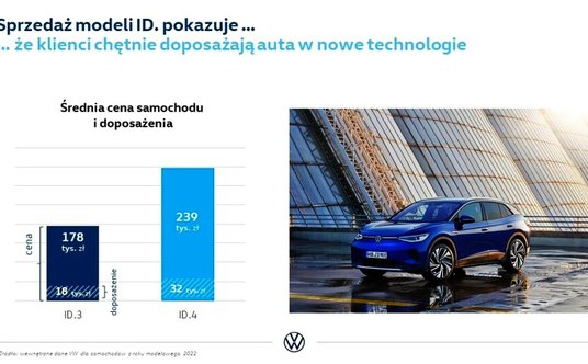 - Wyniki sprzedaży po trzecim kwartale pozwoliły nam plasować się na drugim miejscu w Polsce w rankingu rejestracji aut elektrycznych, po marce Tesla - powiedział Łukasz Zadworny, dyrektor marki Volkswagen, który przedstawił również dane pokazujące, że polscy klienci dodatkowo doposażają modele ID3 i ID4 o dodatki w wysokości. 18 tys. zł (ID3) i 32 tys. złotych (ID4). - Z całą pewnością obecna sytuacja związana z kryzysem na rynku półprzewodników w znacznym stopniu utrudnia nam zaspokajanie potrzeb klientów oraz realizowanie naszych założeń biznesowych – dodał Zadworny.