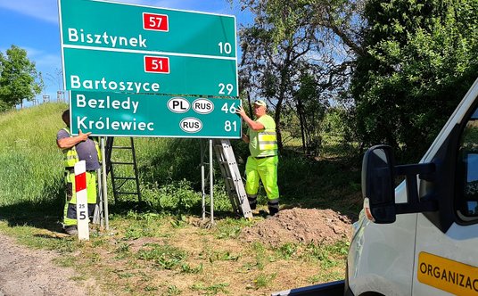 W graniczącym z obwodem królewieckim województwie warmińsko-mazurskim przy drogach krajowych nr 51, 54, 57 oraz S16 i S51 zamontowanych zostanie 26 nowych tablic , na których umieszczono nową nazwę - Królewiec. Na początek wymieniane są tablice przy drodze krajowej nr 51 w Dywitach i Dobrym Mieście oraz przy drodze krajowej nr 57 w Wozławkach i Lutrach. Reszta znaków ma być wymieniona do połowy czerwca 2023 roku. – Decyzję o wprowadzeniu nazwy Królewiec na znakach drogowych podjęto zgodnie z uchwałą Komisji Standaryzacji Nazw Geograficznych poza Granicami Rzeczypospolitej Polskiej, zalecającą stosowanie dla miasta nazywanego po rosyjsku Kaliningrad wyłącznie polskiej nazwy Królewiec, a dla obwodu kaliningradzkiego – obwód królewiecki – komentuje GDDKiA.