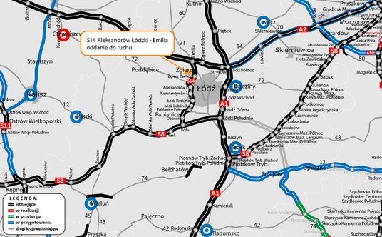 Nowy odcinek drogi ekspresowej posiada dwa pasy ruchu o szerokości 3,5 metra każdy, z możliwością dobudowy trzeciego pasa w razie potrzeby. Jego otwarcie sprawiło, że Łódź stała się pierwszą aglomeracją w Polsce z pełnym ringiem wykorzystującym autostrady i drogi szybkiego ruchu. Dzięki powstałej i oddanej do użytku drodze S14, wyprowadzony został ruch tranzytowy z Łodzi, Pabianic, Zgierza, Konstantynowa Łódzkiego i Aleksandrowa Łódzkiego. Wśród korzyści nie można zapomnieć o łatwiejszym dostępie do autostrad A2 i A1 oraz drogi ekspresowej S8 dla kierowców próbujących wyjechać zachodniej części miasta.