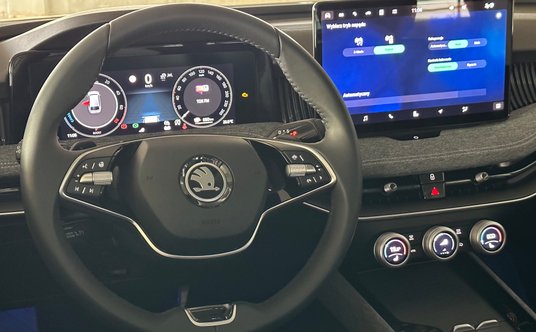Przeprojektowane nadwozie kryje znacznie większe zmiany. Wnętrze jest zaprojektowane od nowa. Przypomina ono teraz bardziej to, z elektrycznego Enyaqa. Deska rozdzielcza łagodnie przebiega przez całą szerokość nadwozia. Na jej szczycie znajduje się 13-calowy wyświetlacz dotykowy, poniżej po raz pierwszy zastosowane w Skodzie, rozwiązanie o nazwie Smart Dials.