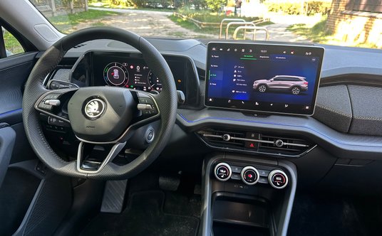 Nowa Skoda Kodiaq to jednak nie tylko przestrzeń i starannie zaplanowane wnętrze, to także nowoczesne rozwiązania, które poprawiają komfort, bezpieczeństwo oraz ułatwiają codzienne korzystanie z samochodu. W centralnym punkcie kokpitu znajduje się duży, 13-calowy wyświetlacz dotykowy. To centrum sterowania pojazdem. Nowy system multimedialny działa płynnie i intuicyjnie, zapewniając dostęp do nawigacji, multimediów oraz ustawień pojazdu. Interfejs systemu został zaprojektowany tak, aby korzystanie z niego było proste nawet podczas jazdy, a integracja z popularnymi systemami Apple CarPlay i Android Auto sprawia, że obsługa smartfonów staje się bezproblemowa.