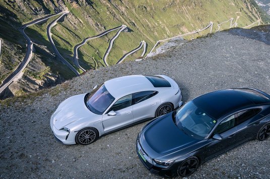 A jeśli już się wspinać na dach Starego Kontynentu to czymś co ma moc i dobre prowadzenie jak np. Audi e-tron GT i Porsche Taycan. Bazujące na tych samych podzespołach limuzyny z koncernu Volkswagena okazały się w praktyce skrajnie różne. Te dwa auta mają zupełnie odmienne charaktery. Obydwa są w swoich słabszych, bazowych wersjach z silnikiem o mocy 476 KM. Taycan w swojej podstawowej wersji ma napęd wyłącznie na tylną oś. Bazowy napęd jednak i tak przekłada się na niezłe osiągi (0-100 km/h w 5,4 sekundy, V-max 230 km/h).