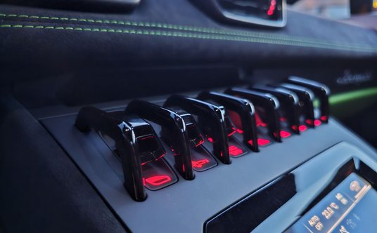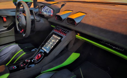 Nie dajcie się zmylić zdjęciom, to auto na żywo wygląda jeszcze bardziej obłędnie. W każdym kawałku karoserii ma wystarczająco dużo dramaturgii, żeby na jego widok ugięły ci się nogi. Linia nadwozia jest dziełem Filippo Periniego, który odpowiadał również za wygląd Aventadora. W porównaniu z odmianą EVO wersja Tecnica ma dłuższe o 6,1 cm nadwozie. Przy zachowaniu niezmienionej wysokości i szerokości sprawia, że wydaje się jeszcze niższe i szersze. Do tego tę wersję rozpoznacie po zmienionym przodzie, tafli czerni w przedniej części zderzaka, która ciągnie się wzdłuż boku auta przez boczne wloty powietrza i do dyfuzora. Przeprojektowana przednia część karoserii ma zwiększyć siłę docisku i poprawić chłodzenie oraz zmniejszyć o 20 proc. opór powietrza, a to pozwala poprawić aerodynamikę, stabilność hamowania i szybciej pokonywać zakręty.